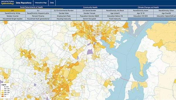 ArchEPI compiles an array of existing, openly available datasets about environmental exposures, social factors, and health outcomes into a coherent, actionable set of health priorities, associated evidence-based design strategies, and related metrics that are relevant at the neighborhood and community scales.